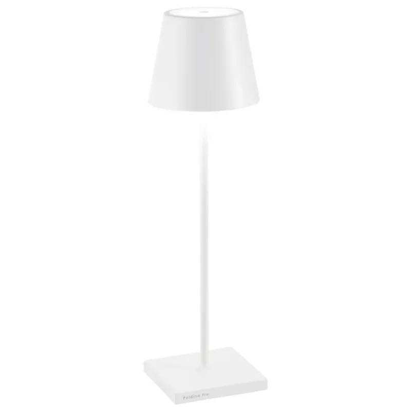 Son coloris Blanc s’intègre parfaitement dans votre univers. Légère visuellement et pourtant si efficace en luminosité, la lampe de table Poldina se déplace librement, éclairant ainsi tout espace sans avoir besoin d’une prise électrique.