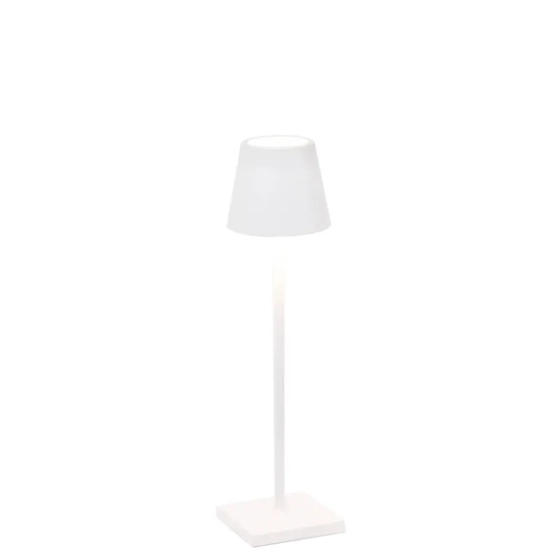 La micro lampe Poldina Blanc de Zafferano est une petite lampe qui se plaît aussi bien à l’intérieur qu’à l’extérieur. Avec sa batterie rechargeable sur socle, elle est équipée d’une source lumineuse LED.