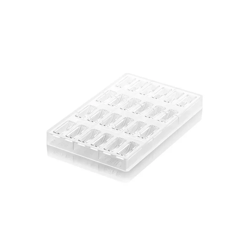 Il a donc imaginé avec Silikomart un moule en tritan au design unique pour créer des pralines en chocolat bombées et striées. Le moule en tritan possède de nombreux atouts :