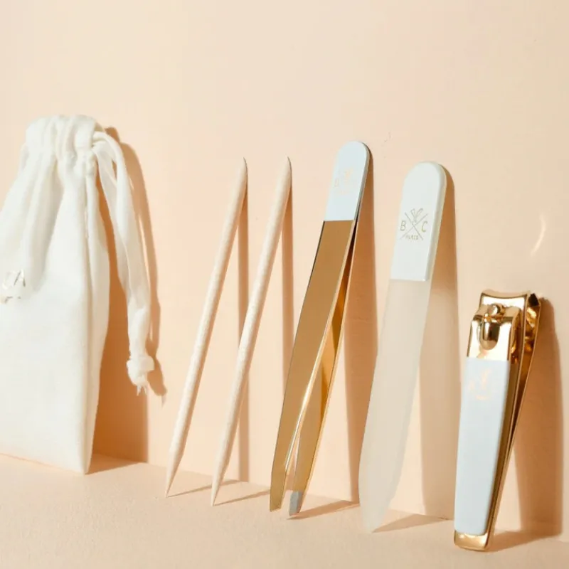 Dans ce kit, vous trouverez un coupe ongles, qui vous permettra d’avoir une coupe précise de vos ongles. Vous pourrez aussi utiliser la lime à ongles en verre, qui vous permettra de limer et de façonner vos ongles avec précision, sans qu’ils se dédoublent, grâce à son grain fin. Les deux bâtonnets cuticules en bois vous permettront de repousser les cuticules et de nettoyer le dessous de vos ongles. Enfin, vous trouverez également une pince à épiler, qui vous garantira une épilation précise, même des poils les plus courts.