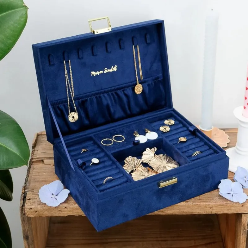 Grâce à cette Boîte à Bijoux Louise Velours Bleu Marine de Maison Scarlett, vos bijoux seront bien protégés au quotidien !