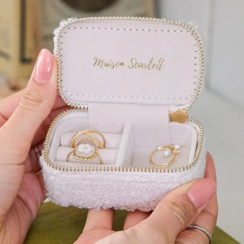 Cette Mini Boîte à Bijoux de Voyage Marie Moumoute Blanc de Maison Scarlett sera parfaitement adaptée pour emporter quelques bijoux lors de vos voyages.