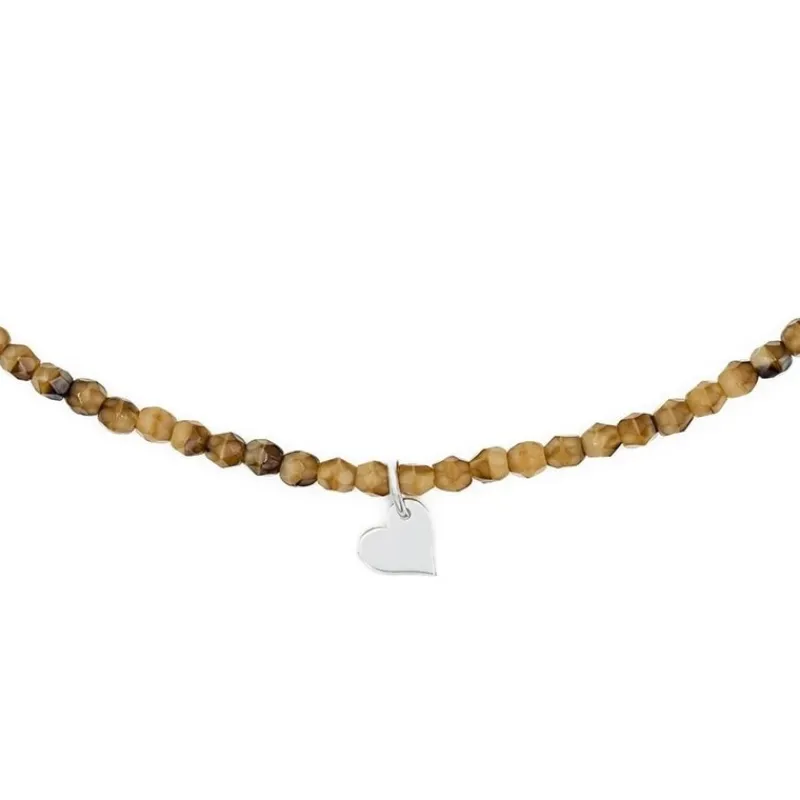Composé de perles de Bohème facettées, ce bijou arbore des couleurs neutres et élégantes, parfaites pour toutes les occasions. Chaque perle est unique, ajoutant une touche d’originalité à votre accessoire. Vous allez être séduit par la petite touche finale, qui rend le bijou encore plus personnel : le pendentif Cœur en argent 925.