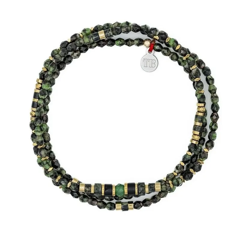 Vous allez inévitablement tomber sous le charme du Collier et Bracelet 3 tours Dundee Jaspe Kambala des Têtes Blondes !