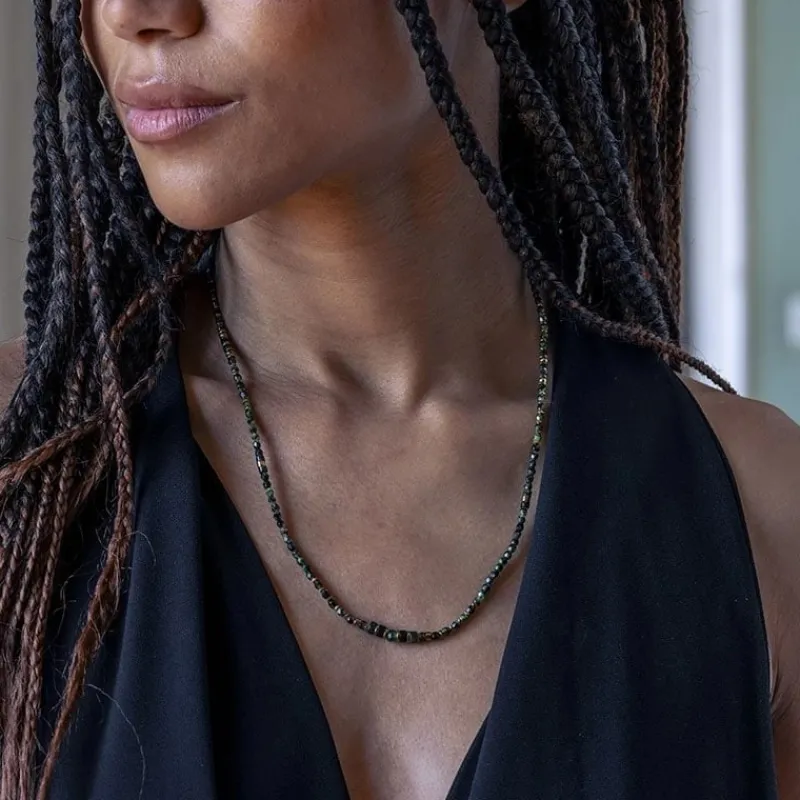 Le bijou Dundee est orné de magnifiques perles de bohème dans une teinte vert vibrante, agrémentées de perles en pierres naturelles de Jaspe Kambala et d’Hématite. Cette harmonieuse association de couleurs et de matériaux ne manquera pas de vous séduire et d’ajouter une note d’élégance à votre collection de bijoux.