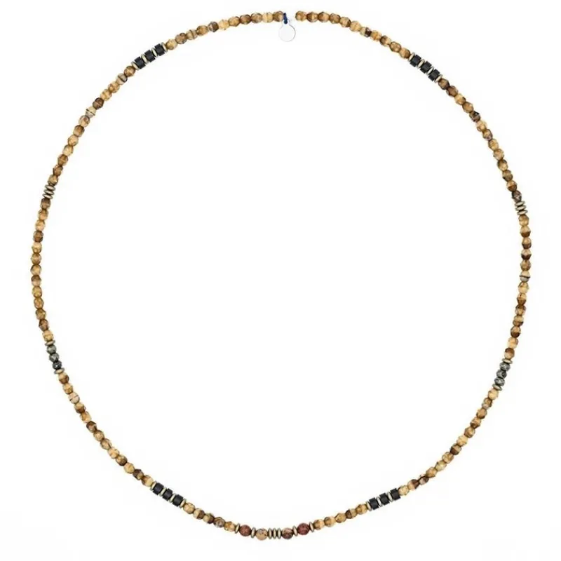 Ce bijou est composé de perles de bohème facettées ainsi que d’éléments précieux tels que la Pyrite, l’Hématite, et l’Agate Noire. Les nuances choisies pour ce bracelet sont parfaitement harmonisées, ce qui facilite son intégration dans une large gamme de styles vestimentaires. Chaque pierre est singulière et ne ressemble à aucune autre, ce qui fait la particularité de ce bijou.