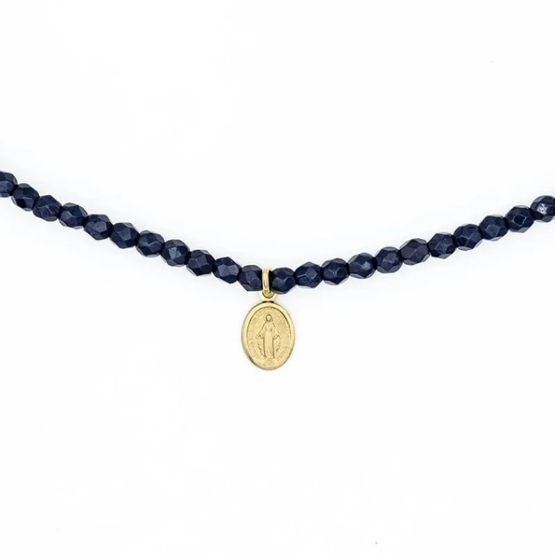 Ajoutez une touche précieuse à votre style avec le Collier et Bracelet 3 tours Madone Bleu Navy des Têtes Blondes.
