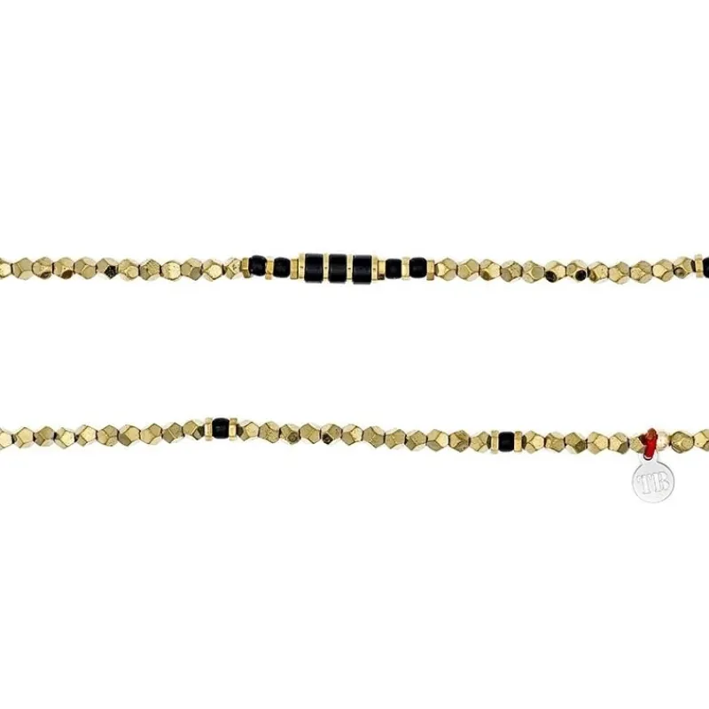 Grâce à l’association entre l’Hématite Gold, l’Agate Noire et la Rocaille noire mat, ce bijou apportera une belle touche d’élégance à votre tenue. Que ce soit pour accompagner une tenue de fête ou pour accessoiriser vos tenues du quotidien, vous ne pourrez plus vous passer de ce magnifique bijou.