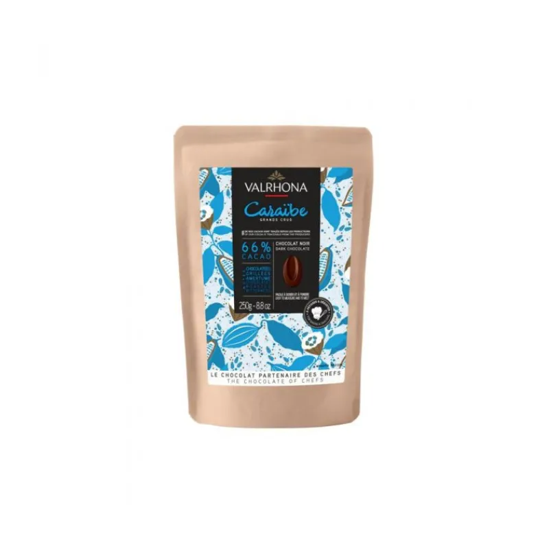 Découvrez un chocolat noir avec une véritable identité gustative : Le chocolat de couverture noir Caraïbe (66% de cacao minimum, pur beurre de cacao) de Valrhona.
