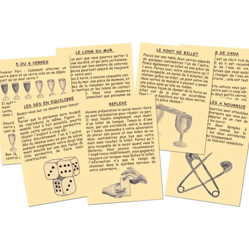L’objectif : Défier vos amis et gagner à tous les coups. 50 paris à reproduire facilement pour épater vos amis, ils sont détaillés étape par étape et réalisables avec des objets du quotidien.