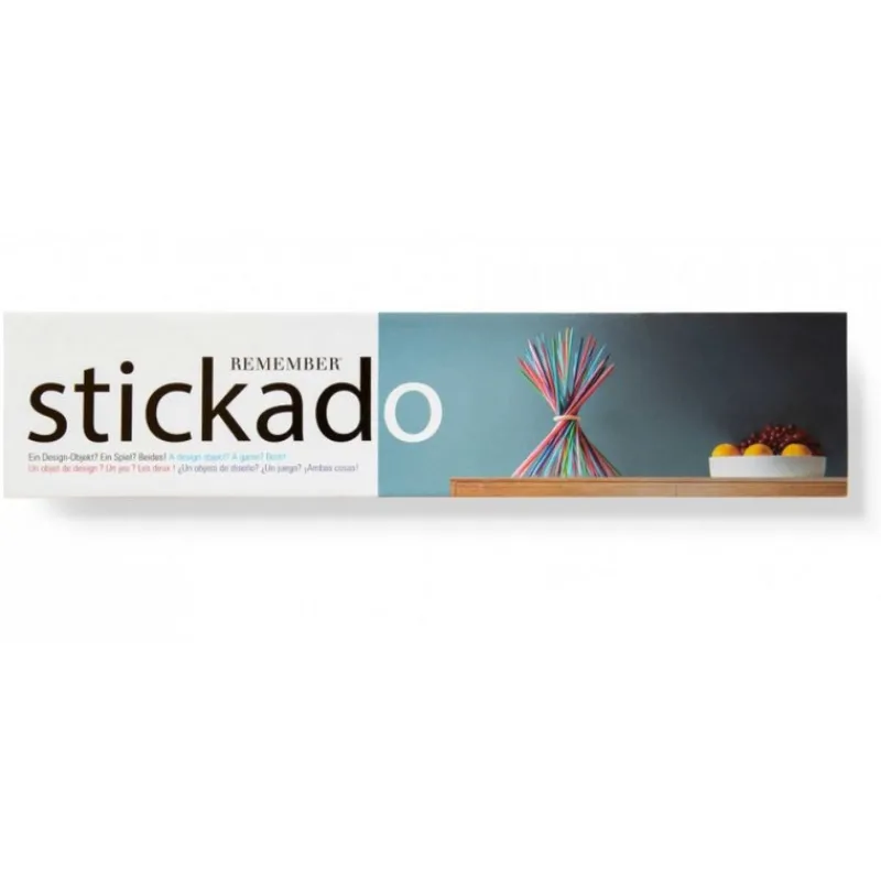 De longeur 40 cm, ce Stickado est jeu d’adresse du mikado classique populaire qu’on joue en famille.Il peut être aussi un objet de design extraordinaire à l’aide de l’anneau en bois, présenté sous forme de »bouquet ». Il convient aux enfants à partir de 6 ans et se joue entre 1 et 8 personnes.
