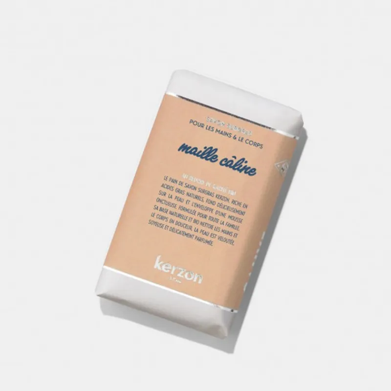 Ce Savon Solide Surgras Maille Câline de Kerzon enveloppera toute votre famille d’une douceur et d’une senteur apaisante et riche.