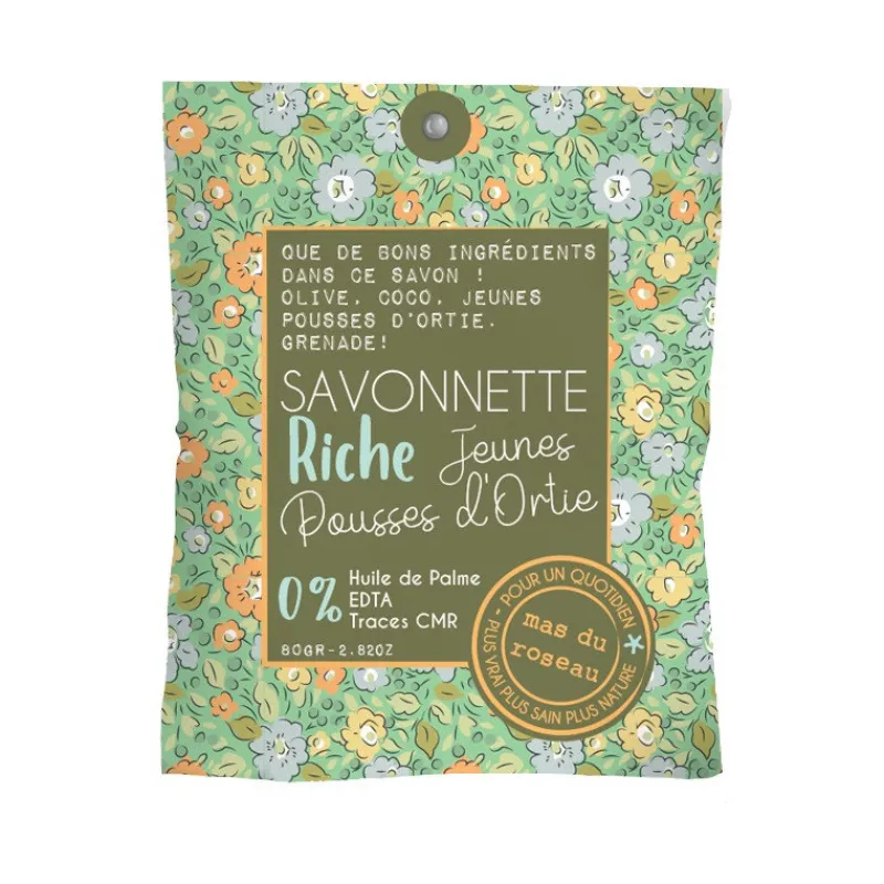 Pour la collection libre, mas du roseau a créé de bons et beaux produits pour satisfaire les besoins des plus exigeantes tant en terme de respect de l’environnement qu’en terme d’odeur. Découvrez la savonnette anti-âge à base de jeunes pousses d’ortie.