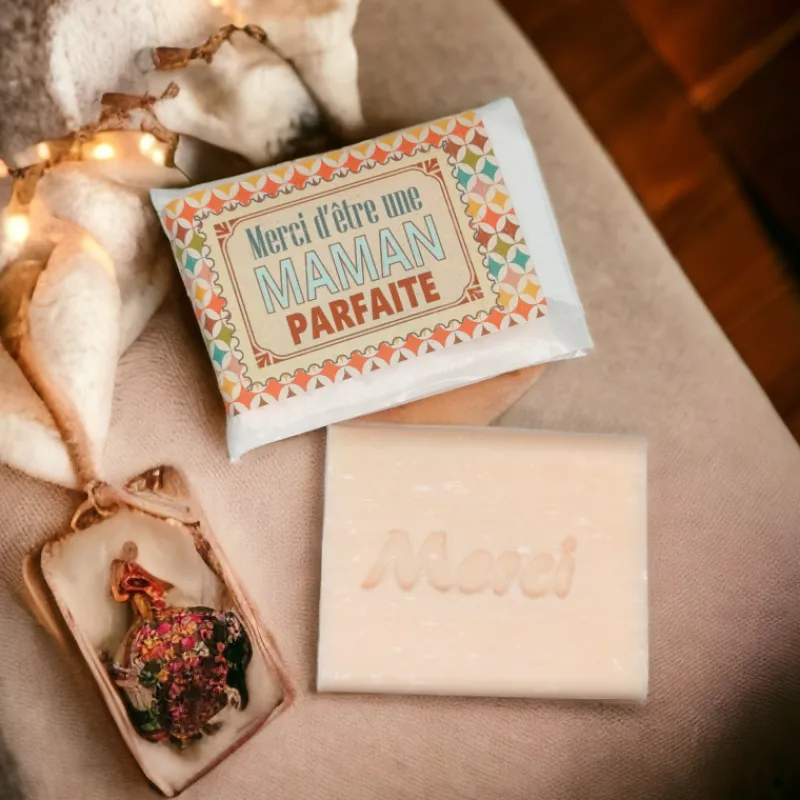 Offrez un petit cadeau, sans occasion particulière à votre maman, grâce à cette Savonnette de Remerciement Maman Parfaite de Mas du Roseau.