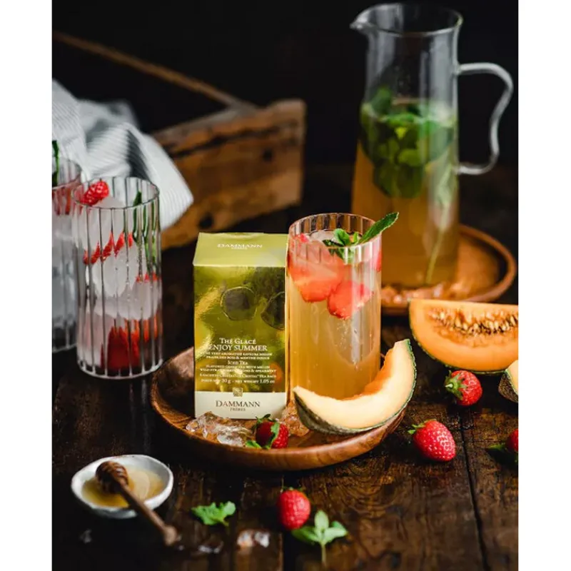 Faire infuser un sachet 3/4 minutes dans 1 litre d’eau à 80°C. Laissez refroidir et verser sur glace dans une carafe. À conserver au frais et à consommer dans les 48 heures après préparation.