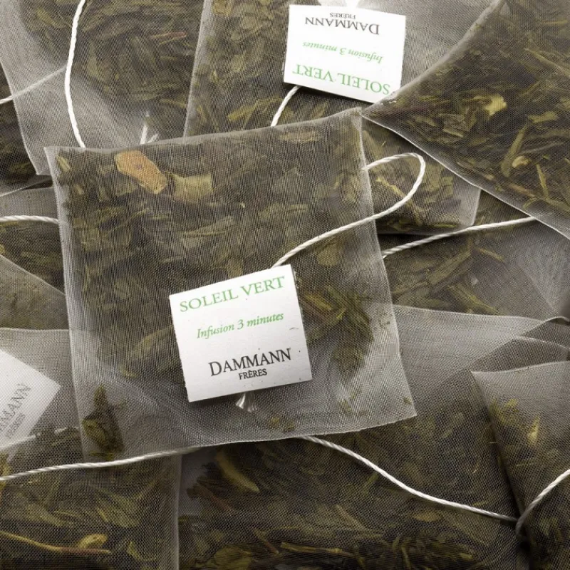 Dans la grande famille des thés verts aromatisés de Dammann Frères, Soleil Vert donne la part belle aux notes d’agrumes. Un mélange fruité et hautement parfumé.