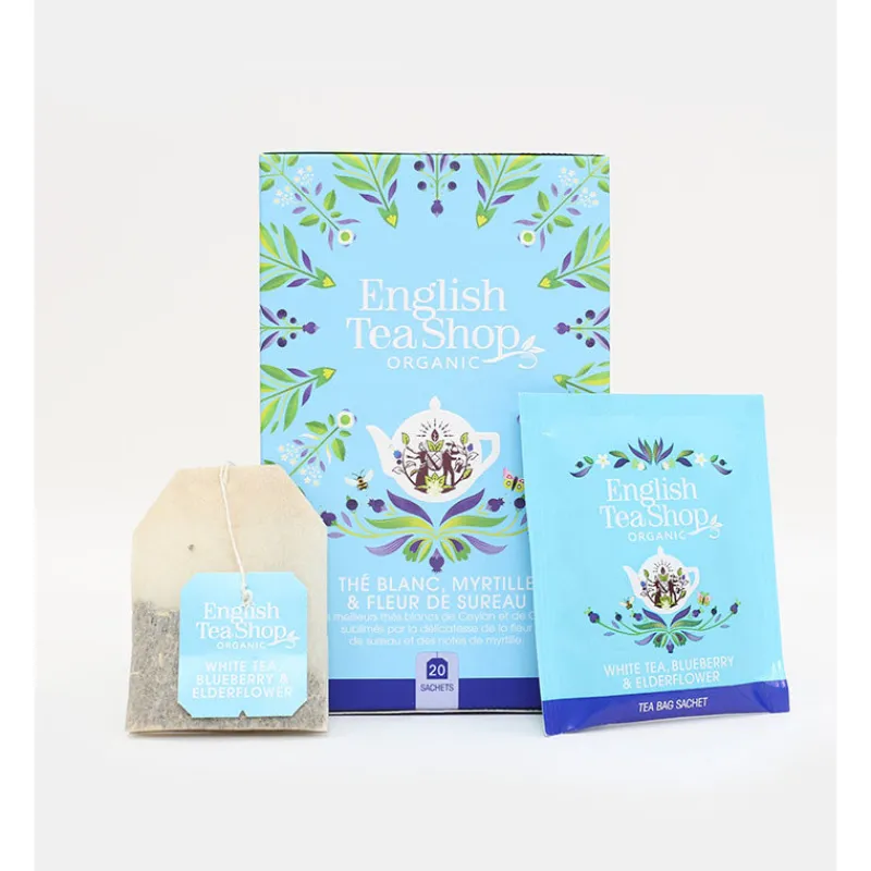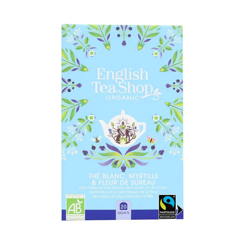 Ce Thé Blanc Bio Myrtille et Fleur de Sureau de la marque English Tea Shop vous séduira si vous aimez les boissons légères et douces.