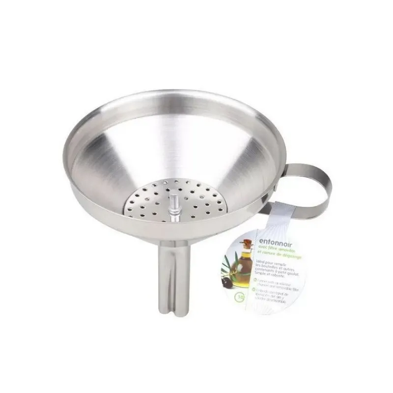 Entonnoir avec filtre amovible et rainure de dégazage.
