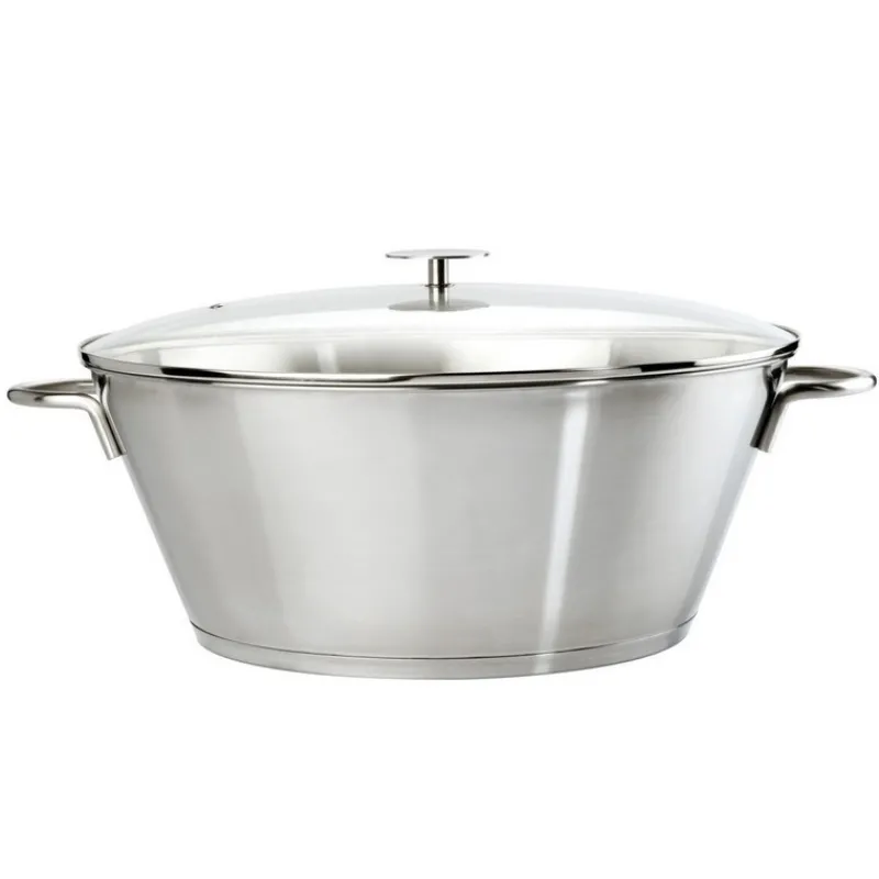 Cette bassine en inox brossé comprend 2 anses fixes en inox et un couvercle en verre. La température est répartie sur toute la surface du fond et des parois pour une cuisson douce, économique et savoureuse.