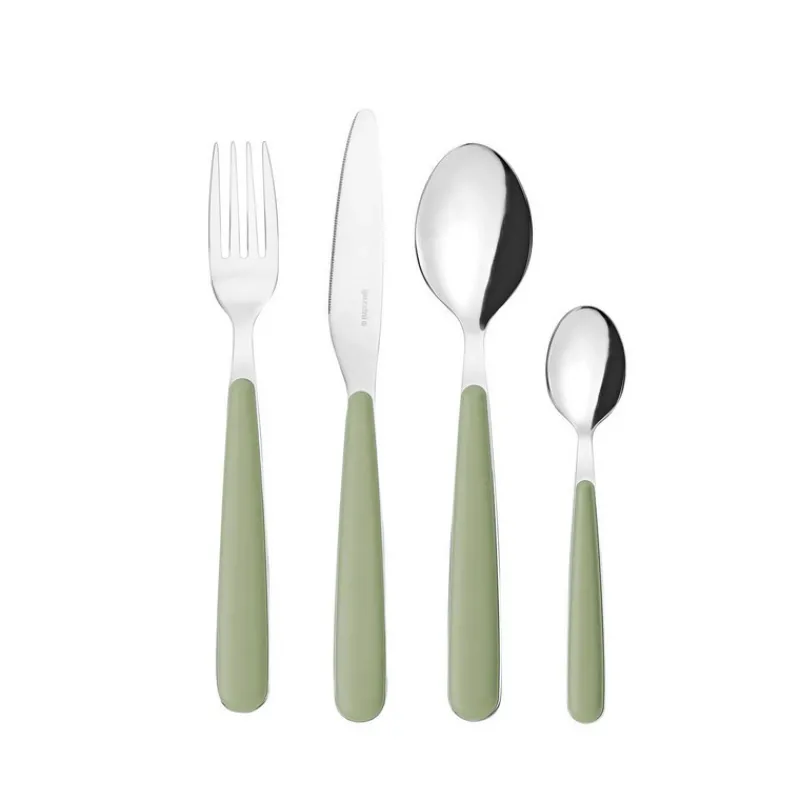 L’acier inoxydable de haute qualité est incorporé dans un manche en ABS à l’effet mat très actuel. Le coloris Vert Sauge des couverts Pop s’harmonise agréabement avec de nombreux services de table.