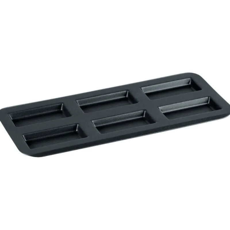La plaque à 6 financiers Obsidian de Gobel permet la cuisson des financiers et biscuits rose de Reims, croustillants et dorés. Simple d’utilisation et fonctionnelle, elle supporte une température maximale de 250°C.