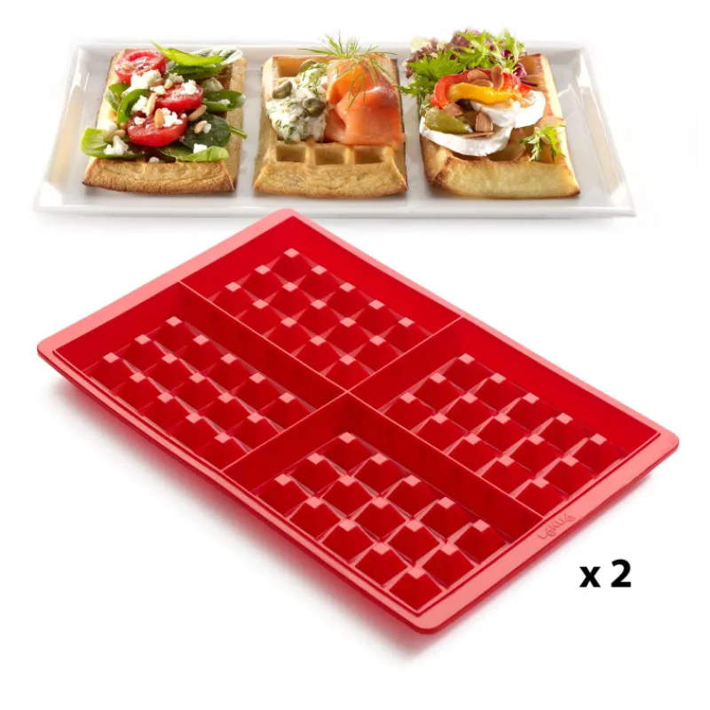 Préparez 8 délicieuses gaufres à la fois avec ce set de 2 moules en silicone de Lékué. Préparez votre pâte à gaufres sucrée ou salée et décorez-les comme vous le préférez.