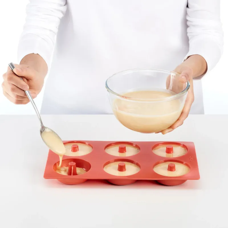 Vos donuts auront ainsi, la forme parfaite et ne demanderont plus qu’à être décorés. Et comme ce moule supporte une grande amplitude thermique, il peut être utilisé du congélateur jusqu’au four, vous permettant une multitude de recettes : Pourquoi pas des donuts glacés…