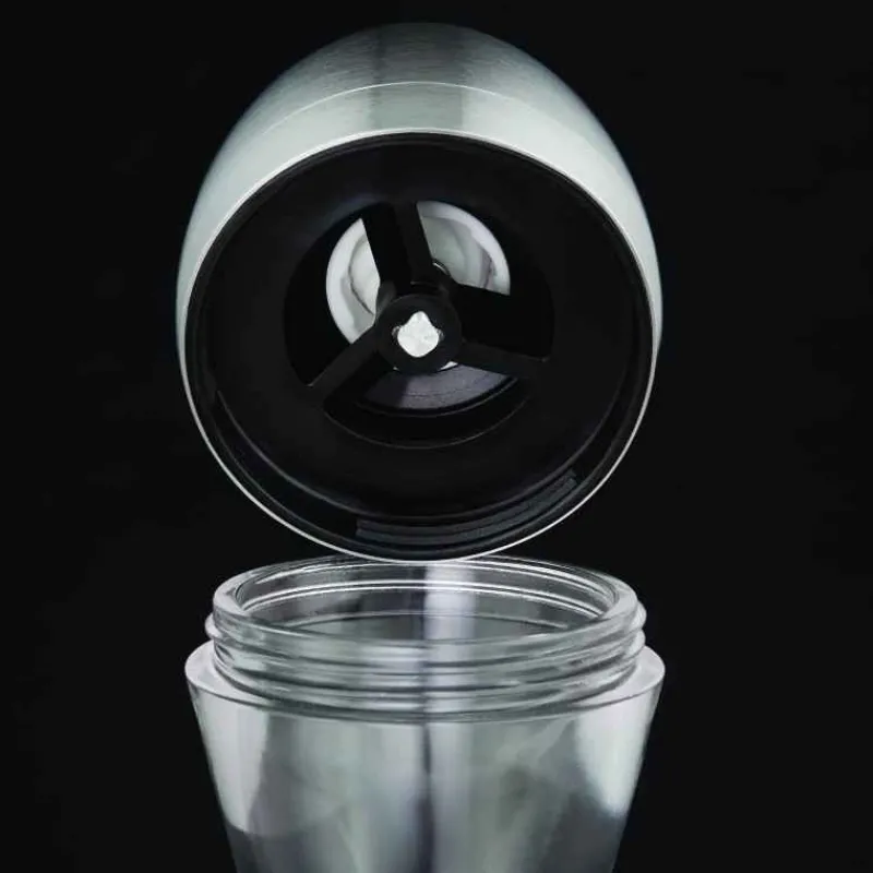 Moulin en acier inoxydable et acrylique avec mécanisme en acier carbone.