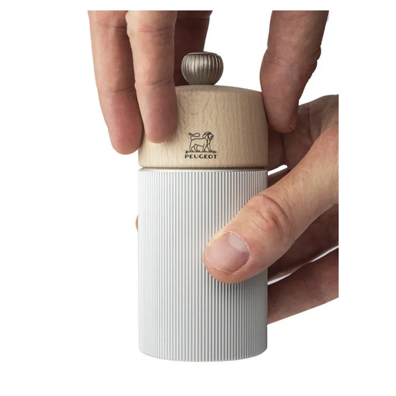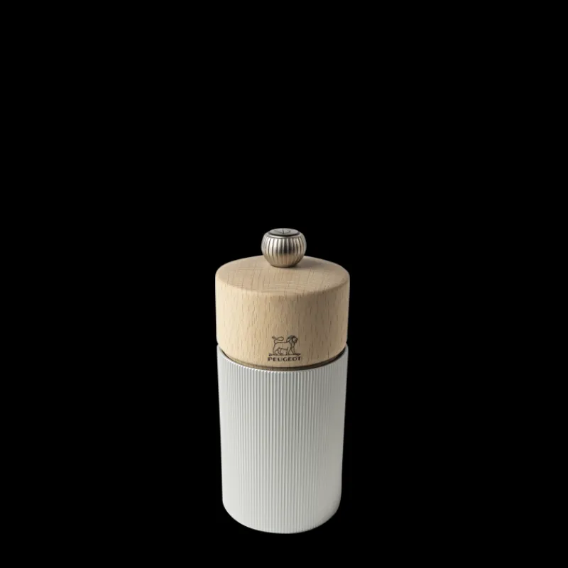 Parfait pour un usage sur table, il offre une combinaison chic et un sublime effet graphique. Ce moulin à poivre fabriqué en France abrite le fameux mécanisme Peugeot garanti sans limitation de durée. Le bouton qui le surmonte, marqué de l’empreinte du Lion, permet un réglage facile de la mouture.