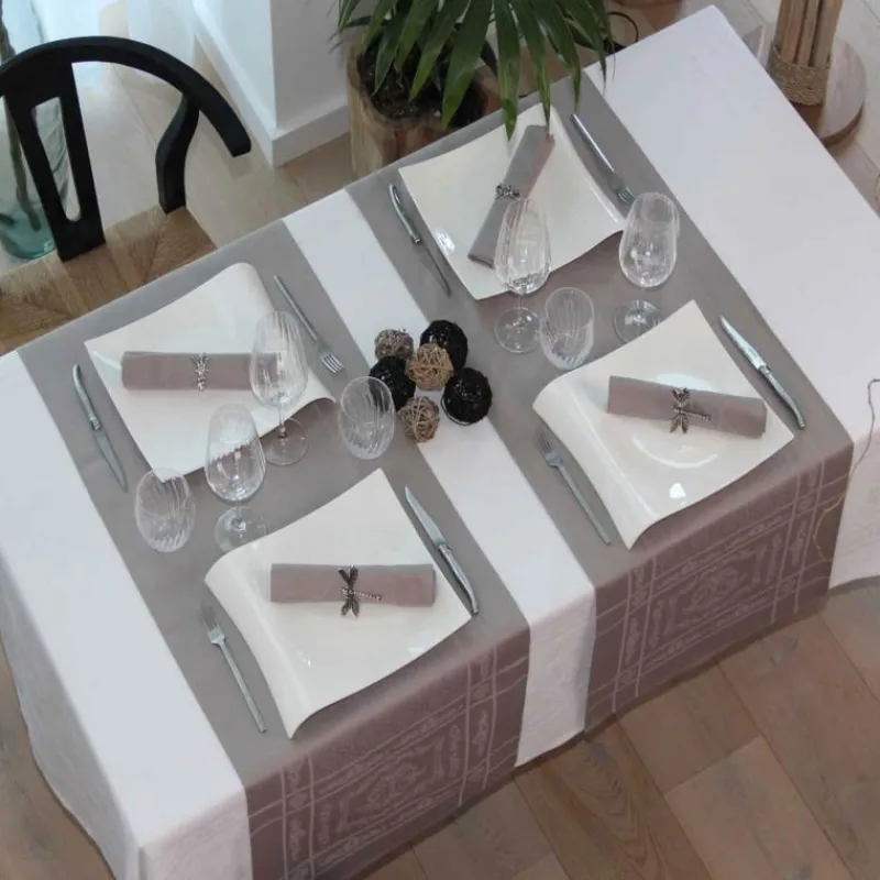 La collection Chateaurenard de la maison Sud Etoffe vous invite dans une ambiance chic et baroque. La confection jacquard damassé de la nappe Chateaurenard offre un tissage raffiné et élégant, digne des grandes maisons !