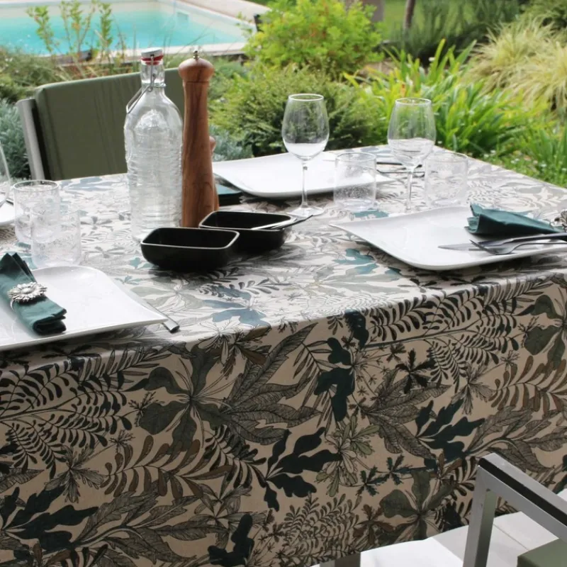 Cette Nappe enduite Storm Bangkok de Sud Etoffe sera parfaite pour accompagner les repas avec vos proches en extérieur !