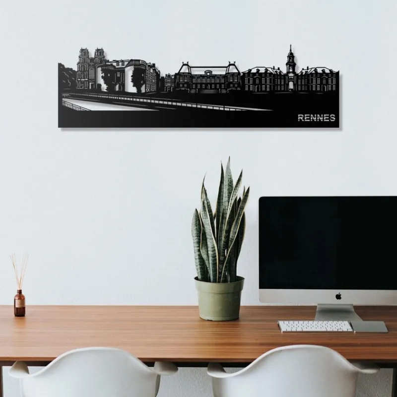 La skyline de Rennes dessine avec élégance l’atmosphère de la ville bretonne. Exposée dans votre intérieur, le simple fait de contempler cette silhouette vous émerveillera. Simple à installer, avec ses encoches de fixation discrètes, ce décor fera l’unanimité dans votre entourage.