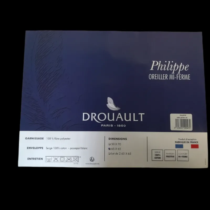 L’oreiller Philippe est d’un confort mi-ferme. Fabrication française de la maison Drouault.