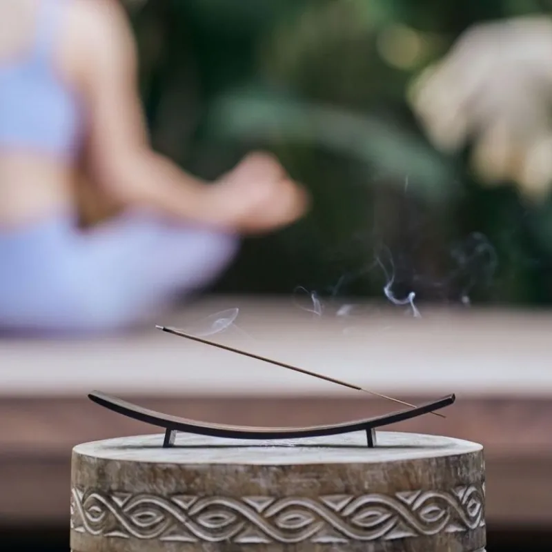 - Installez votre bâtonnet d’encens sur un porte-encens et allumez-le.
