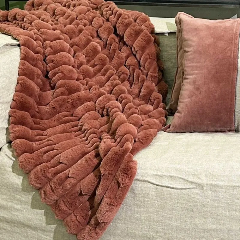 En fausse fourrure, le plaid Eclat Bois de Rose de Sud Etoffe intégrera parfaitement votre déco intérieure. Il apportera douceur, moelleux, confort et chaleur bien sûr !