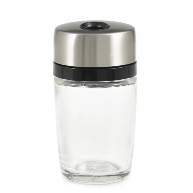 Le bouchon du pot à épices, en acier inoxydable, offre 3 positions : verser, saupoudrer et fermer.