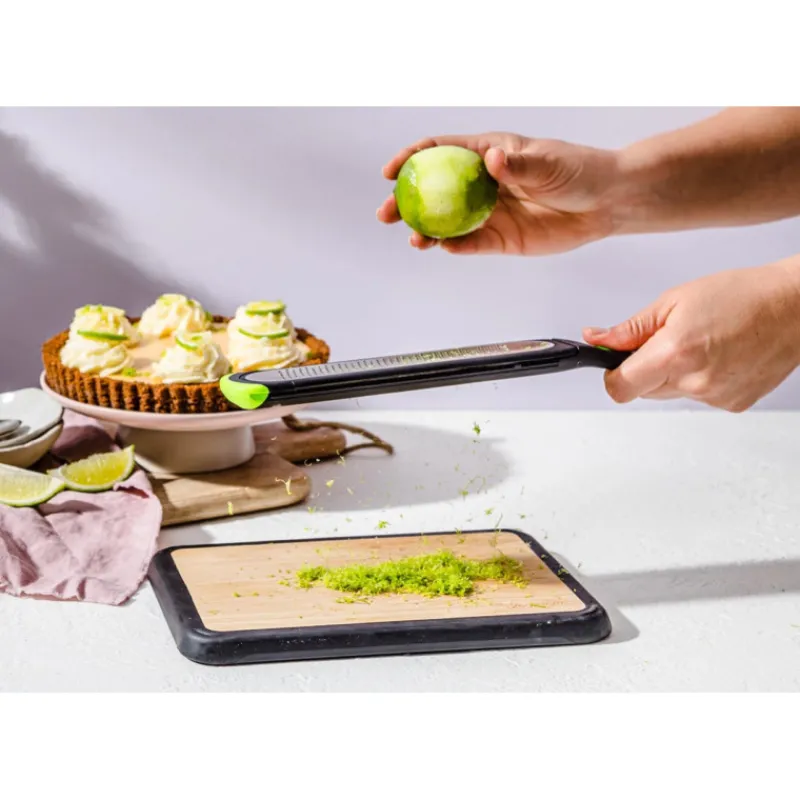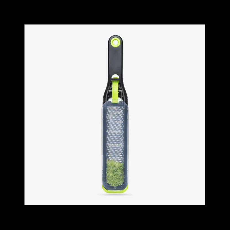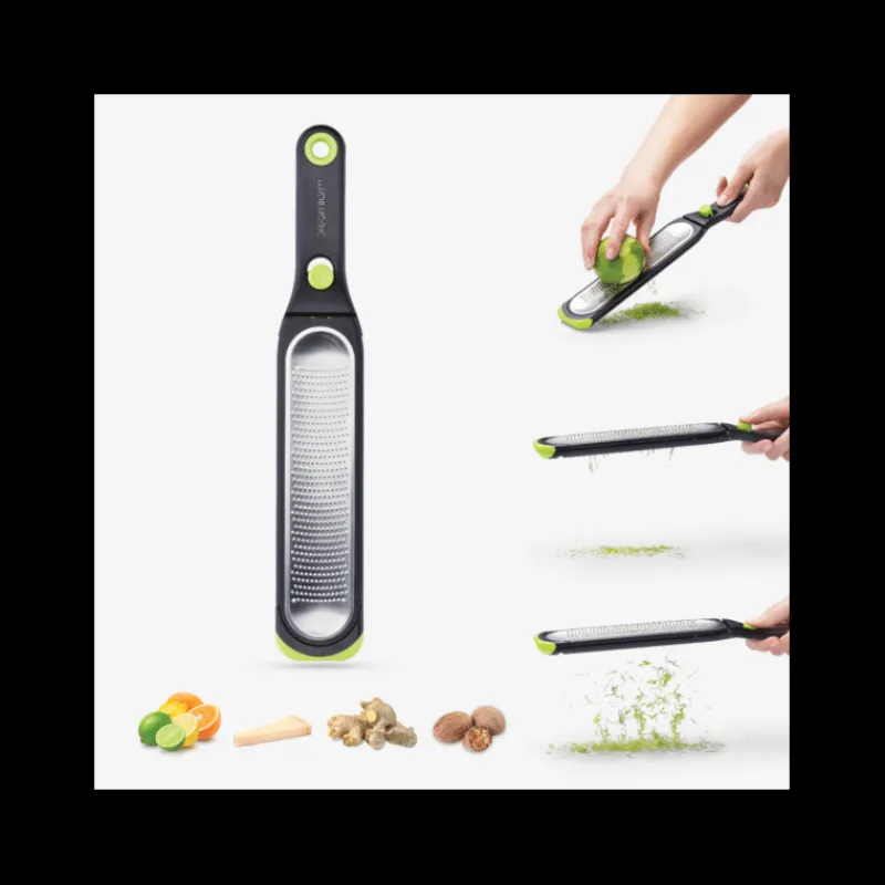 Les 441 lames super fines sont photodécoupées et parfaitement inclinées pour créer un zeste plus moelleux et plus aromatique, sans la moelle amère. Le couvercle protecteur de la lame quant à lui, s’enclenche ou se glisse pour un rangement sans souci, et sert également de collecteur de zestes, mesurant jusqu’à 2 cuillères à soupe.