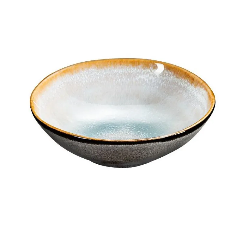 Shadow Aqua est une collection lumineuse en grès réactif émaillé, à l’arrondi irrégulier. Une touche artisanale qui crée une table remarquable de chaleur et de convivialité.