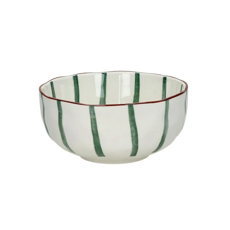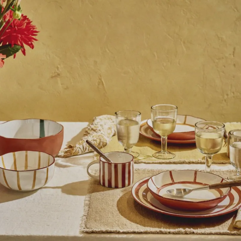 Grâce à ce bol aux formes irrégulières qui lui confèrent un charme fou, vous créez une table ensoleillée aux inspirations helléniques. Son liseré caramel et ses rayures vertes sont mises en valeur par une porcelaine blanche lumineuse.