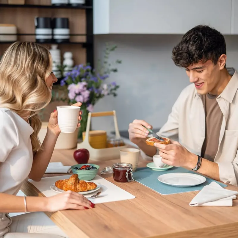 Blanc Lait, Bleu Poudré ou encore Sable, le set de table réversible Fiber a une excellente planéité. Sa conception le rend très souple donc facile à utiliser. Vous pouvez le rouler et l’utiliser des deux côtés. Une innovation des équipes du Guzzini Lab.