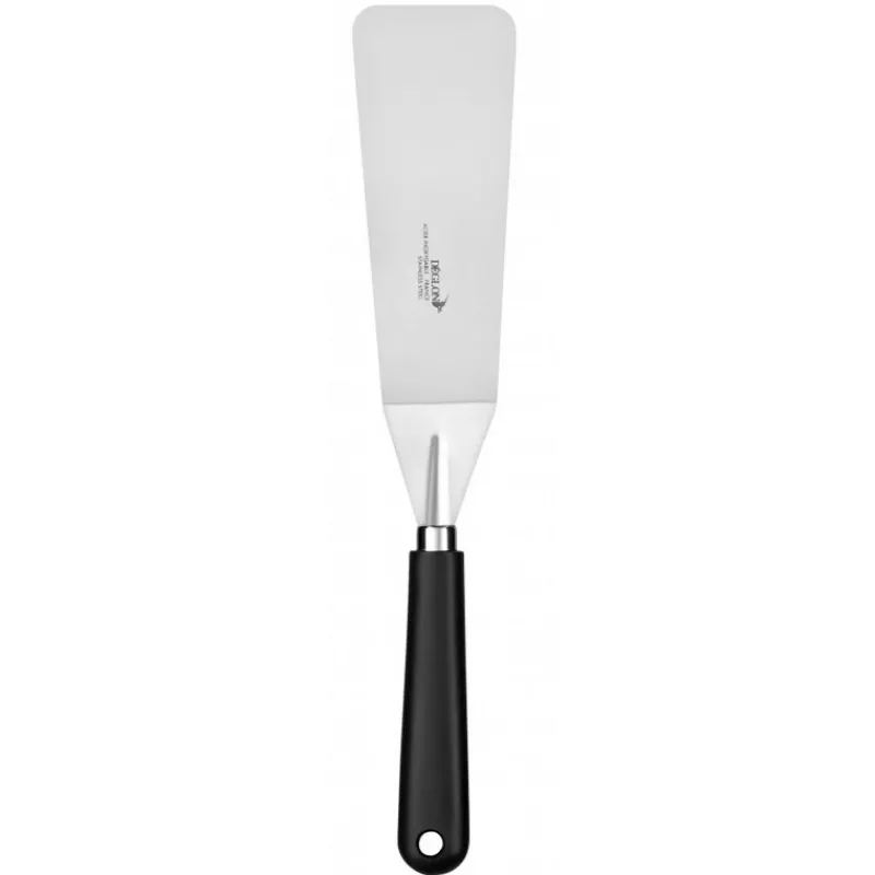 Facilement reconnaissable par sa forme, la spatule est l’allié des pâtissiers, des chocolatiers et des confiseurs. En inox, elle vient lisser la surface d’un gâteau, étaler une génoise sur la plaque de cuisson ou glacer tout un gâteau.