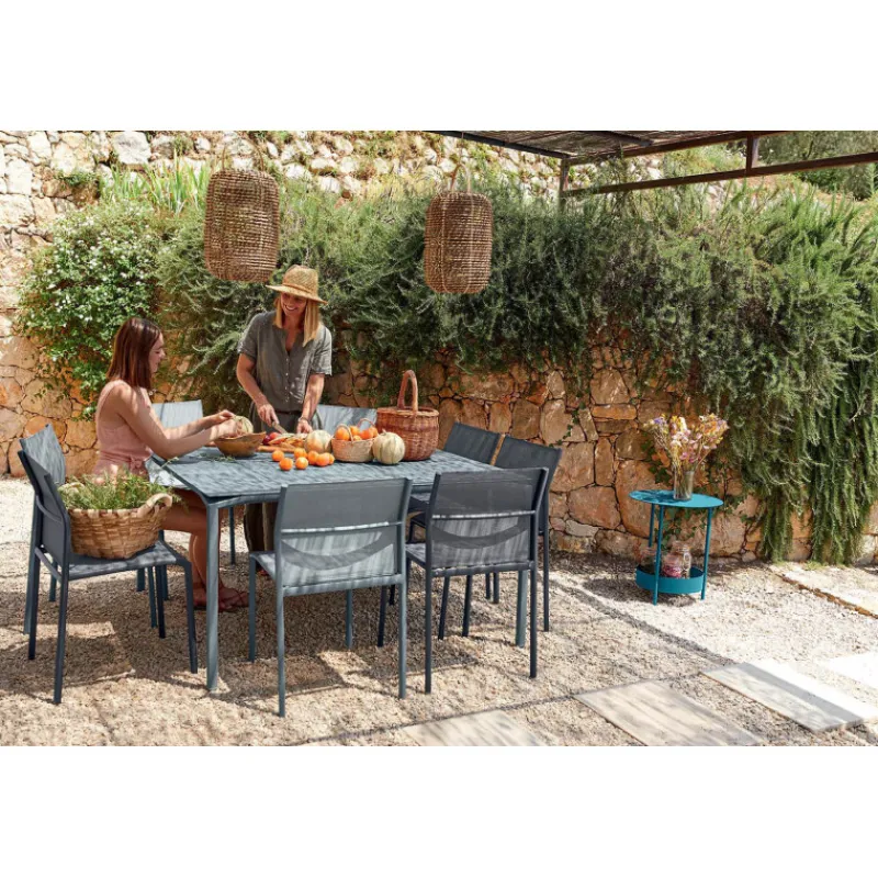 Contemporaine et stylée, la table de jardin carrée Calvi de Fermob est un must-have. Design et facile à vivre, elle reçoit jusqu’à 8 convives dans un format original.
