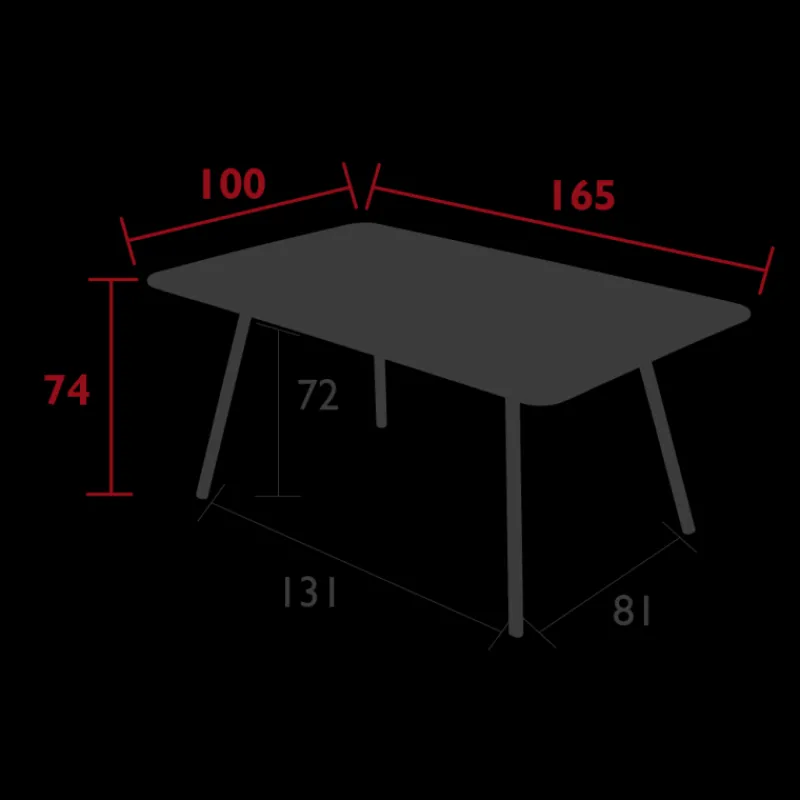 - Dimensions plateau : 165 x 100 cm