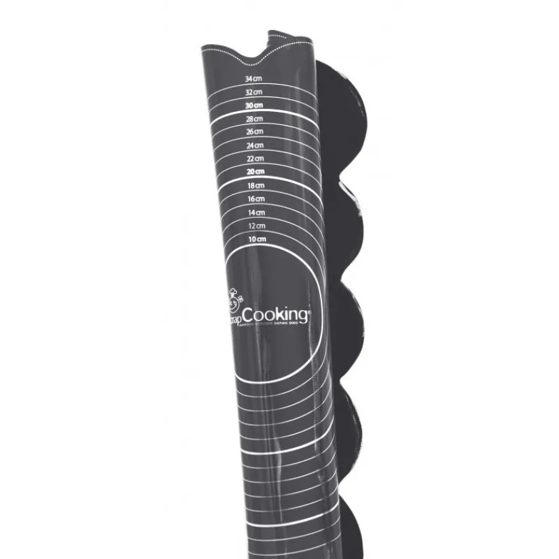 Ce tapis pâtissier ultra résistant grâce au silicone associé à la fibre de verre vous permettra de mesurer rapidement les dimensions de vos réalisations. Déterminer les dimensions idéales pour recouvrir un gâteau en pâte à sucre, servir de guide pour la pâte à tarte, de gabarit à cookie, ou doser des ingrédients en cuillères à café et cuillères à soupe par exemple… Vous trouverez de multiples utilités et astuces à ce tapis pâtissier.