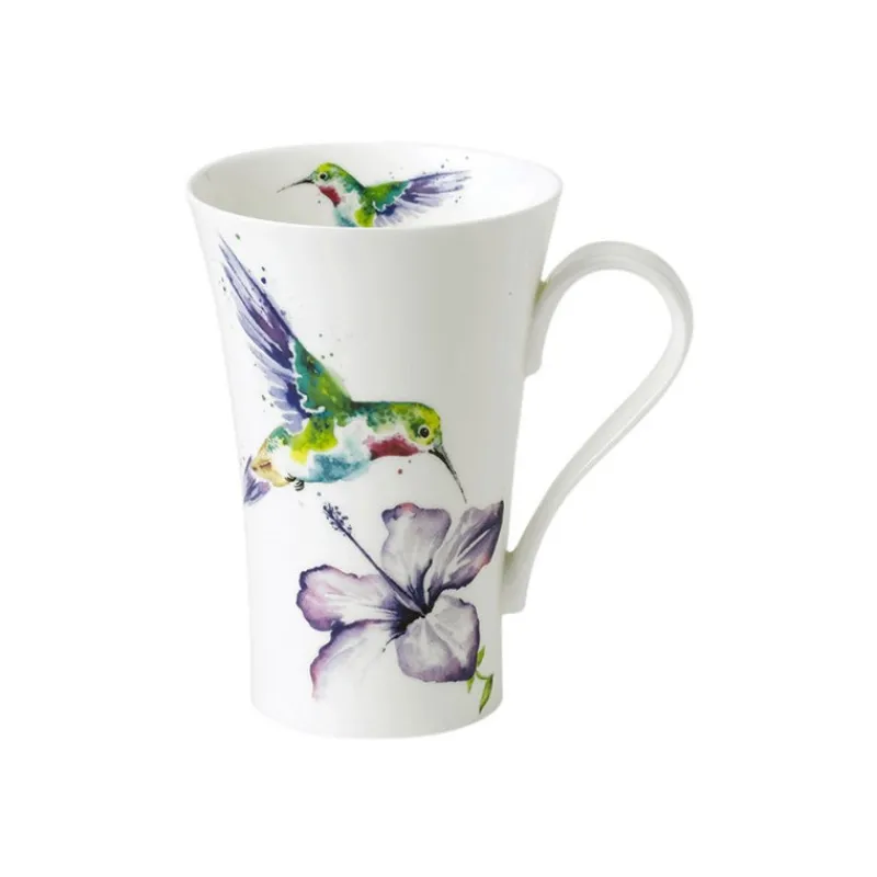 Laissez-vous transporter dans un jardin anglais avec ce mug aux délicats motifs Colibri de chez roy kirkham. grace à sa grande contenance, vous pourrez déguster toutes vos boissons préférées. Sa porcelaine fine « bone china » est caractérisée par son très haut degré de blancheur et de transparence, sa dureté et sa forte résistance aux chocs, en font l’une des porcelaines les plus raffinées et les plus nobles.