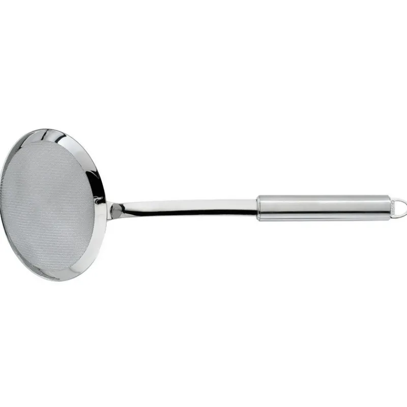 - Matériaux : Tamis fin cerclé inox brillant et manche inox brossé