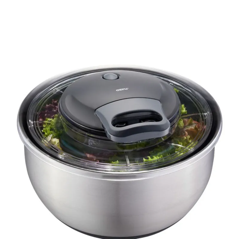 Gefu présente une élégante et efficace essoreuse en inox avec mécanisme à cordon.