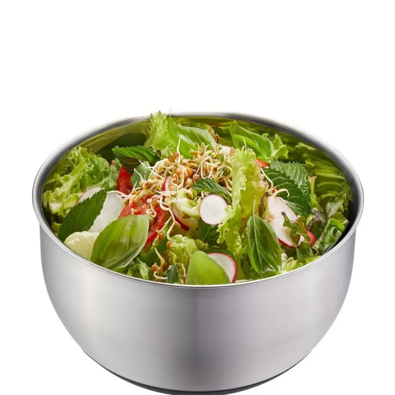 On apprécie également l’élégant bol en acier inoxydable qui est idéal pour servir la salade avec élégance et sa base en silicone anti-dérapante.