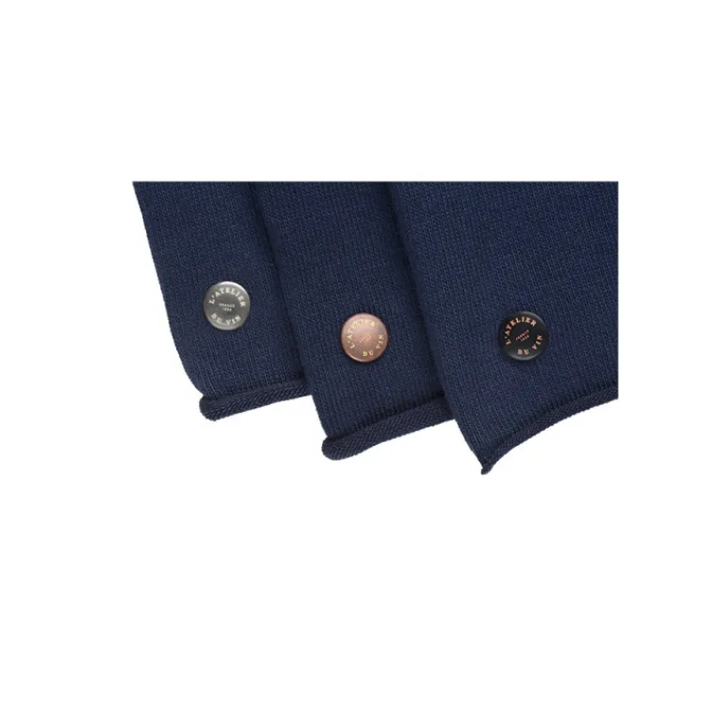 Les 3 caches-bouteilles de L’Atelier du Vin s’adaptent à la plupart des types de bouteilles de 75cl (Bordeaux, Bourgogne, Champagne…) et se distinguent les uns des autres grâce à la couleur des rivets fixés à leurs bases. Enfin des cache-bouteilles élégants et fabriqués en France.