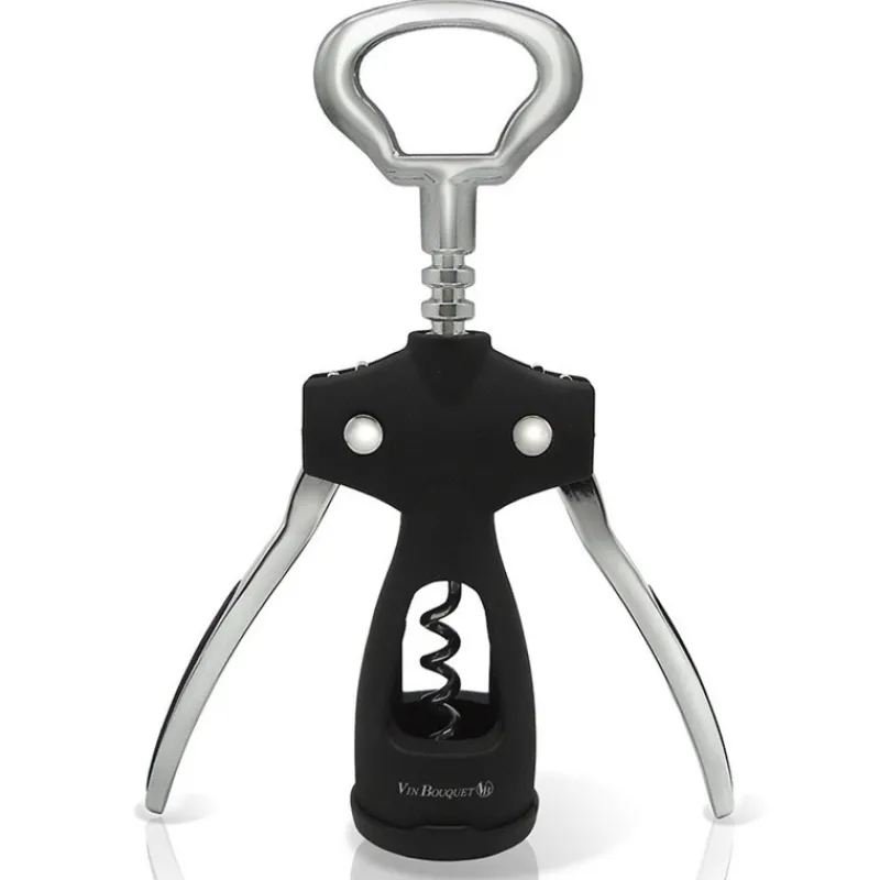 Le tire-bouchon Vin Bouquet dispose de deux bras, appelés aussi ailettes, qui s’élèvent de chaque côté au fur et à mesure que la mèche spirale s’enfonce dans le bouchon. Il suffit ensuite d’abaisser les bras pour extraire le bouchon rapidement, facilement et sans forcer.
